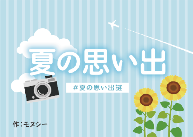 【作者(謎解きクリエイター)】 空空-karakara- HP:https://karakara.studio.site/ SNS:https://x.com/unit_karakara 【作品紹介】 テーマはタイトル通り「夏の思い出」。 ライト目ながら、持ち帰り謎だからこそできる自由な発想をお楽しみください 【商品内容】 キットとLINEを使用します。 【プレイ人数】 1人〜複数人(推奨人数:1〜2人) 【プレイ時間目安】 30分~60分 【難易度】 低 【対象年齢】 12歳以上推奨(中学生以上推奨) 【必須ツール】 LINE 【ヒントページ】 あり