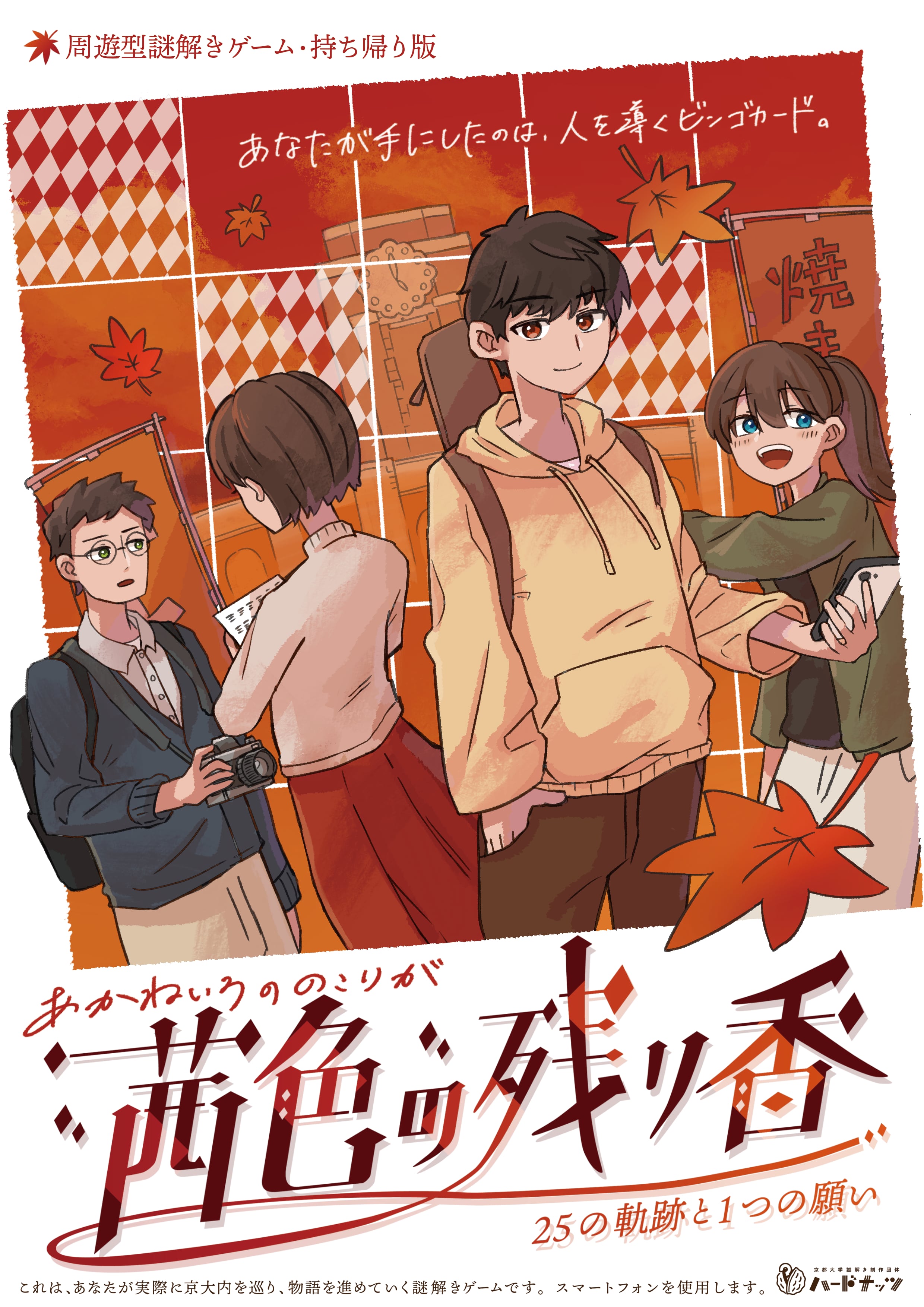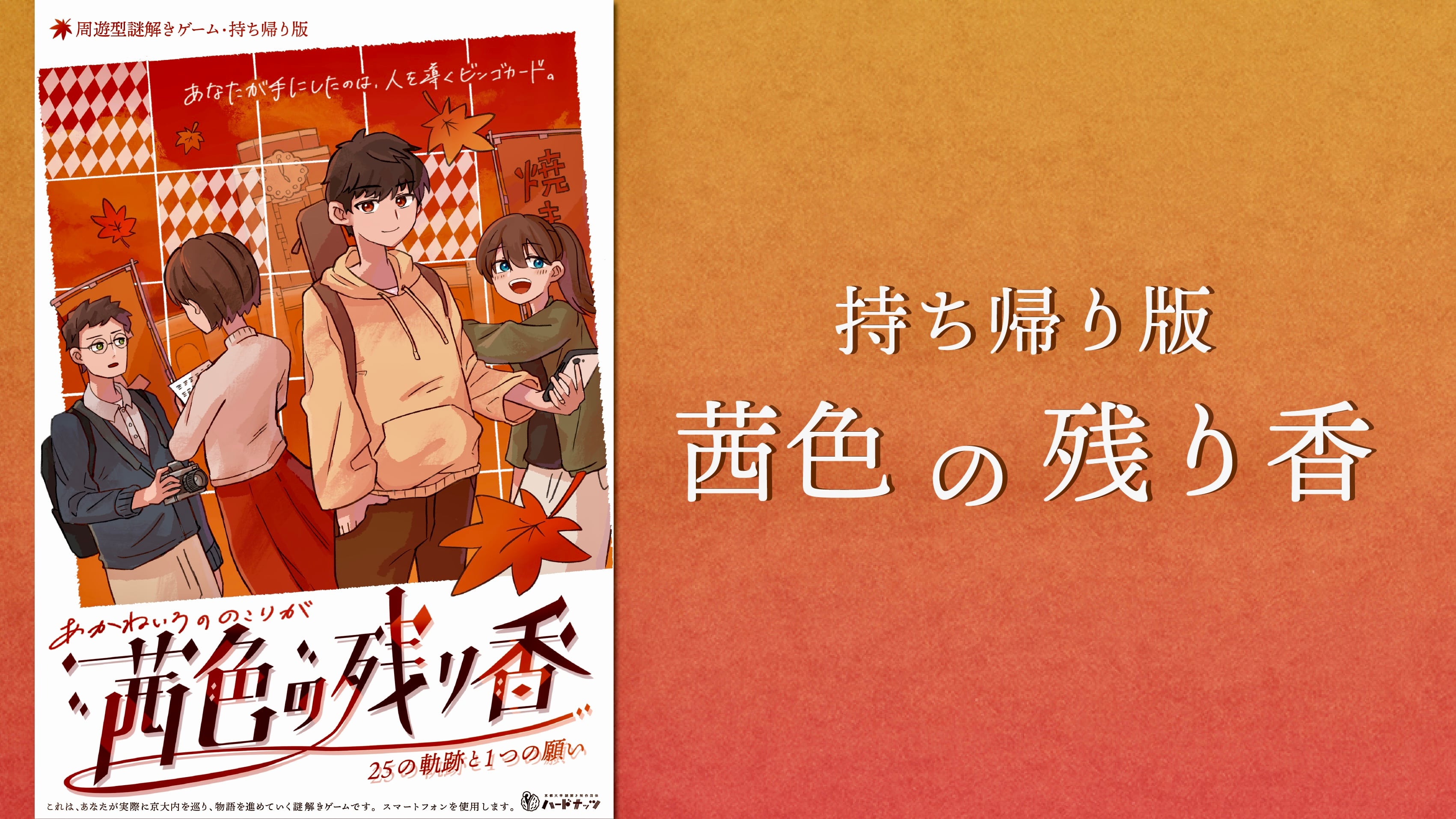 2023年11月の京都大学学園祭「NF」にて2000人を動員した周遊謎『茜色の残り香』が持ち帰り謎としてリメイク!現地での体験を可能な限り再現したものとなります。